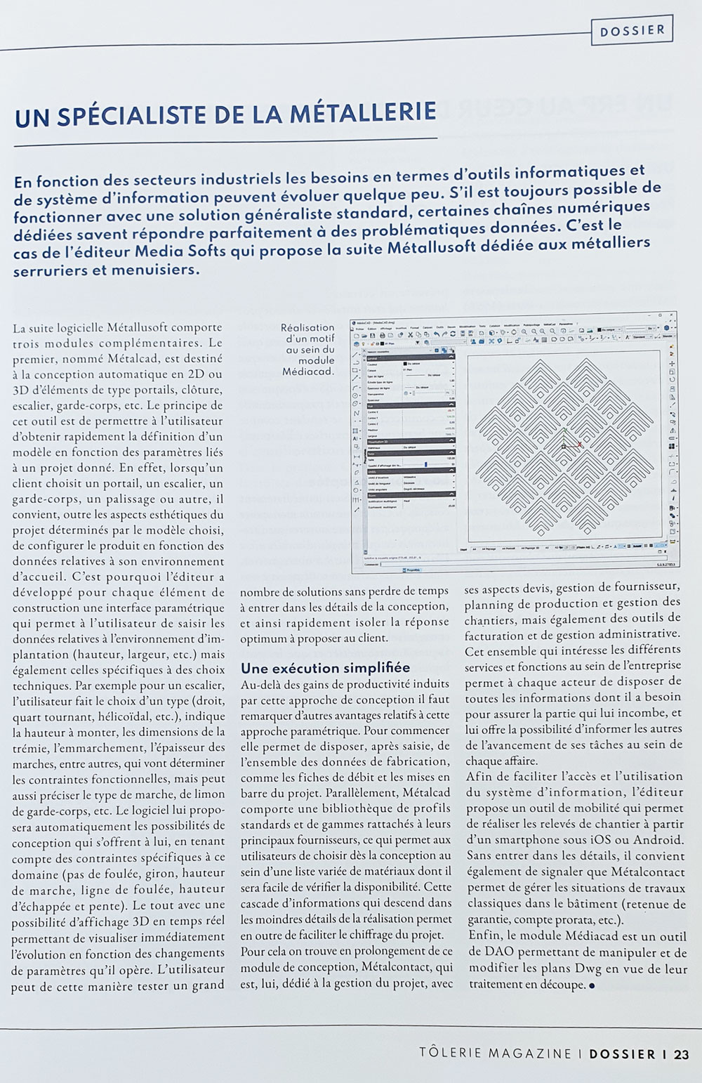 « En fonction des secteurs industriels les besoins en termes d’outils informatiques et de système d’information peuvent évoluer quelque peu. S’il est toujours possible de fonctionner avec une solution généraliste standard, certaines chaînes numériques dédiées savent répondre parfaitement à des problèmes données. C’est le cas de l’éditeur Média Softs qui propose la suite MétaluSoft dédiée aux métalliers serruriers et menuisiers. »
