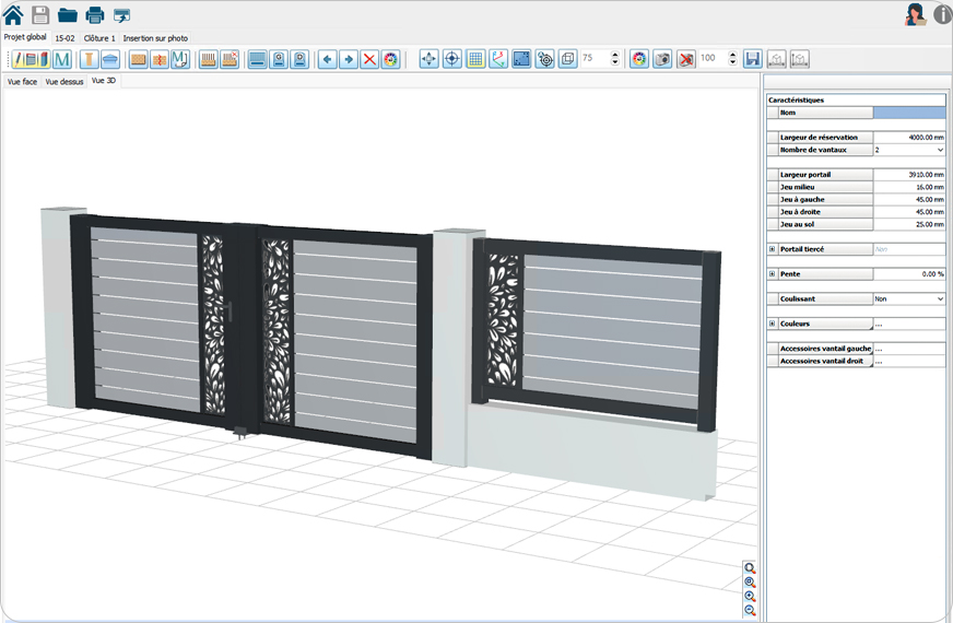 Optimisez vos conceptions avec MétalCad et ses 5 modules spécialisés : escaliers, garde-corps, portails, clôtures et menuiseries. Profitez d’une bibliothèque de plus de 10 000 références et 400 découpes personnalisées pour créer des projets sur mesure. Les plans de fabrication sont générés automatiquement avec feuilles de débit, développés et plans de coupe, et les rendus 3D réalistes permettent de présenter vos projets à vos clients de manière percutante.